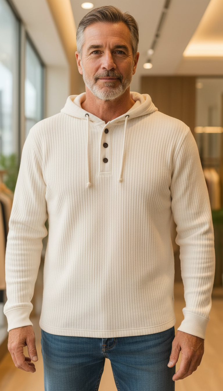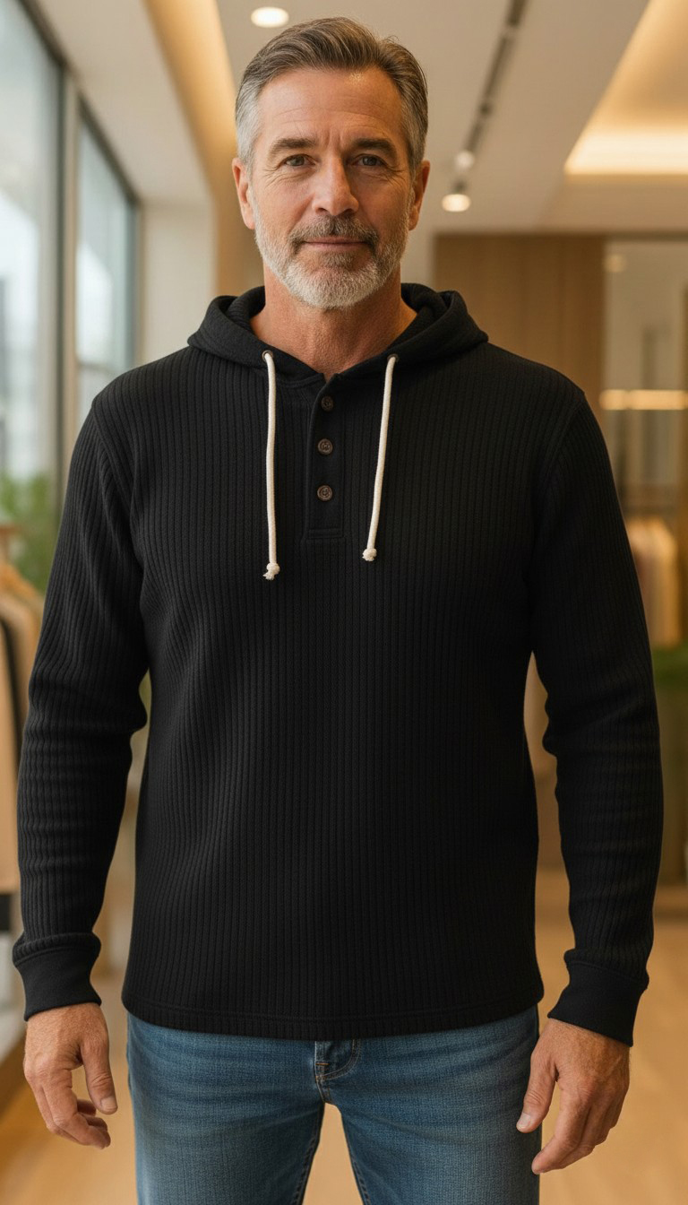 Men's Casual Solid Color Waffle Zipper Long Sleeve Hooded Sweatshirt