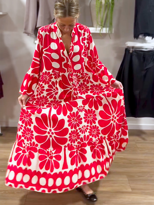 Introducing our V-Neck Button Printed Dress, designed for the modern woman who values sophistication and style. This dress features a stunning print and elegant maxi length, making it perfect for any occasion.